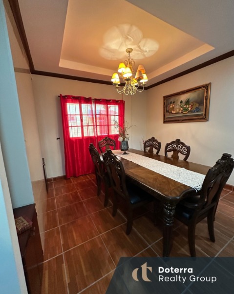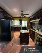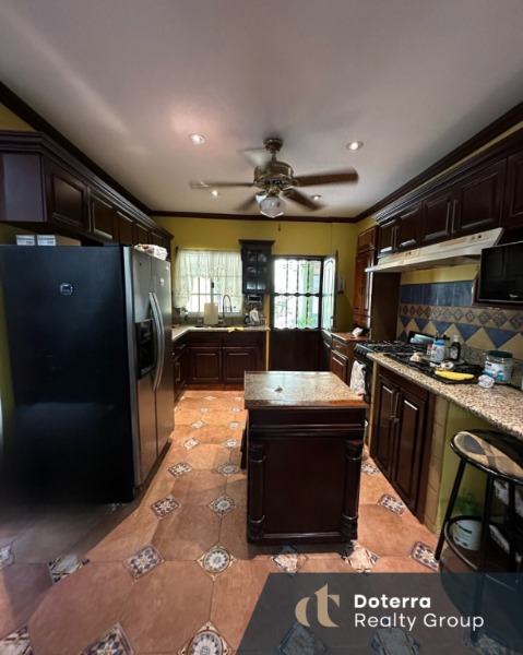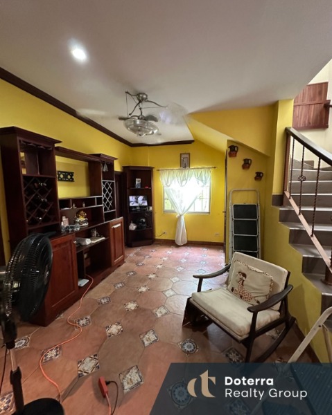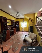 Recibidor, estudio con baño, sala ámplia de dos secciones y comedor, cocina con alacena, sus muebles de caoba y cuenta con counters, desayunador y pared backsplash de marmol y espacio para comedor familiar. Baño de visita, área social y de barbacoa contiguo a la piscina climatizada (calentador). Area de gimnasio de dos niveles con baño y cuarto de vapor. 1 habitación de servidumbre con baño privado, 3 bodegas pequeñas y área de lavanderia.